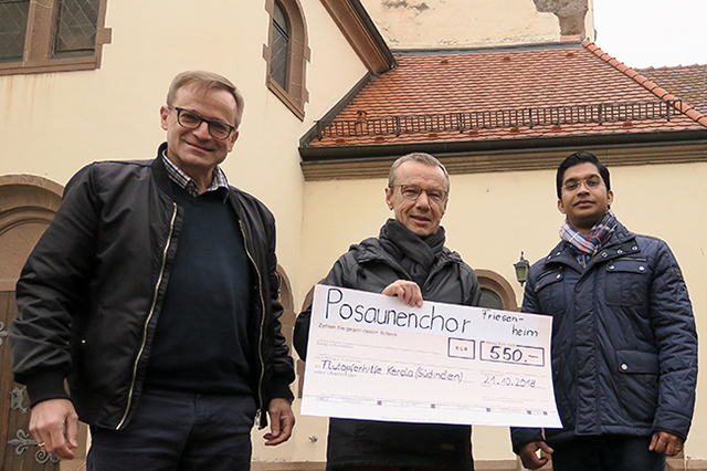 Die Einnahmen des Konzerts kommen den Opfern der Flutkatastrophe im indischen Kerala zugute. Pfarrvikar Tijo Parathottiyil, der in der katholischen Kirche Friesenheim mitarbeitet, kommt aus der südindischen Region, die beim Monsun überschwemmt wurde. Hierfür soll das Geld, das von Obmann Fritz Windmüller und Dirigent Michael Fünfgeld übereicht wurde, verwendet werden.